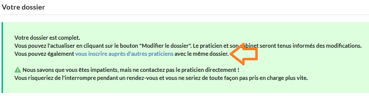 Dans l'encart vert, à gauche de votre écran, cliquez sur “Vous inscrire auprès d'autres praticiens”.