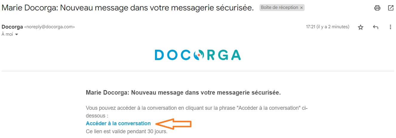 Vous recevez un mail de Docorga, contenant un lien d’accès à la conversation.